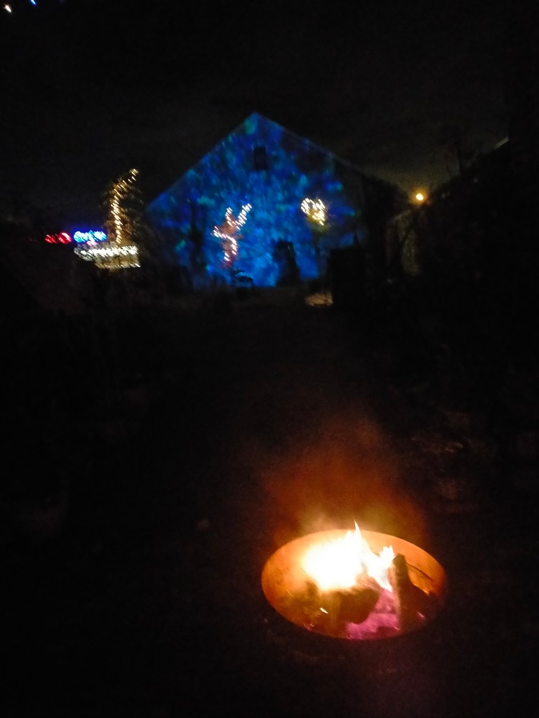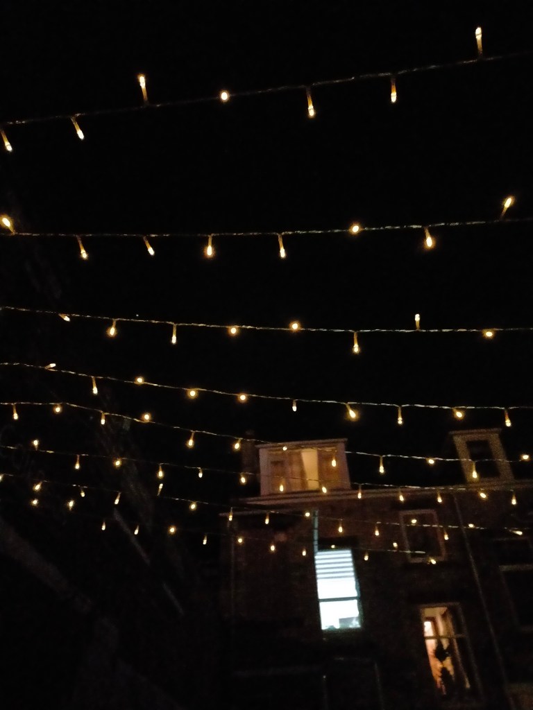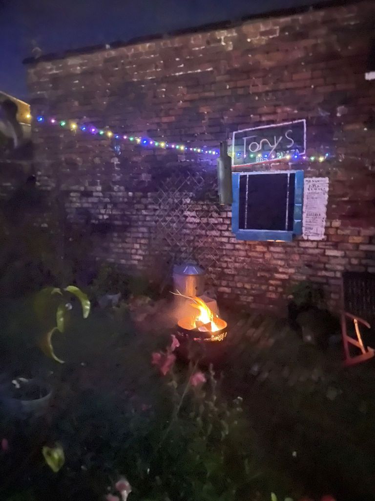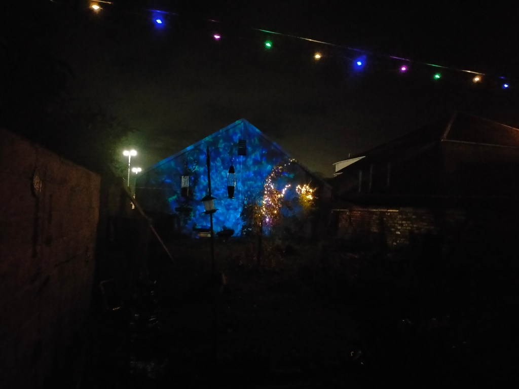 It did not rain. It was relatively mild. The gods smiled. One set of lights failed, which were the decorative net over the tables. I suspect my aspirations to eat outside were optimistic anyway. However in the spirit of Dog’s Life, after our guests had gone and I was outside switching things off;